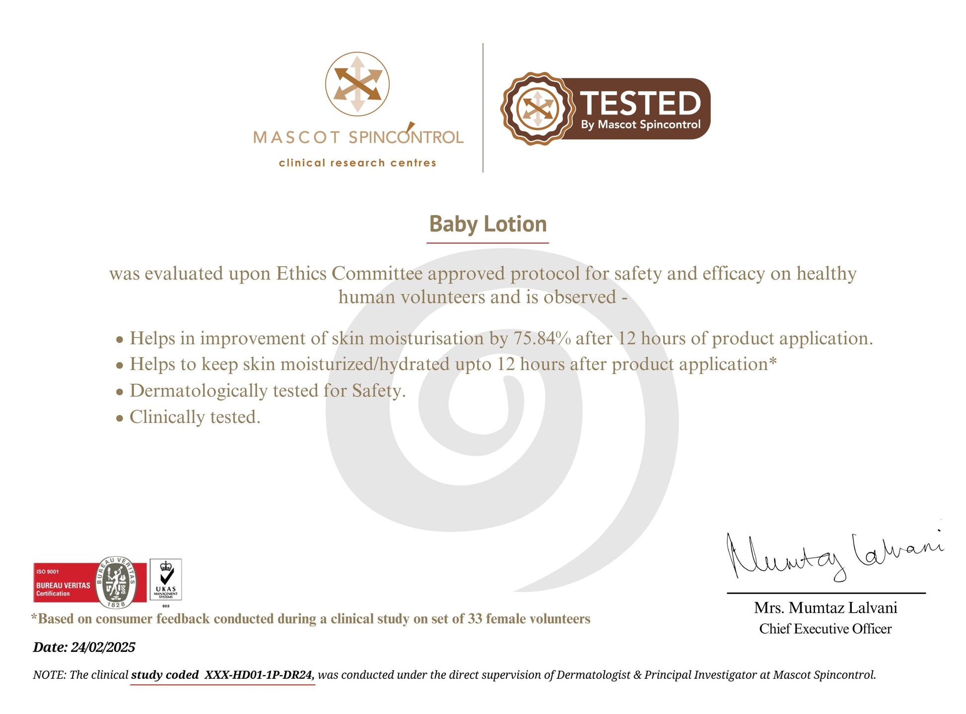 24 Hours Lock-in Hydration: Keeps baby’s skin soft and moisturized all day long, no frequent re-applications.
