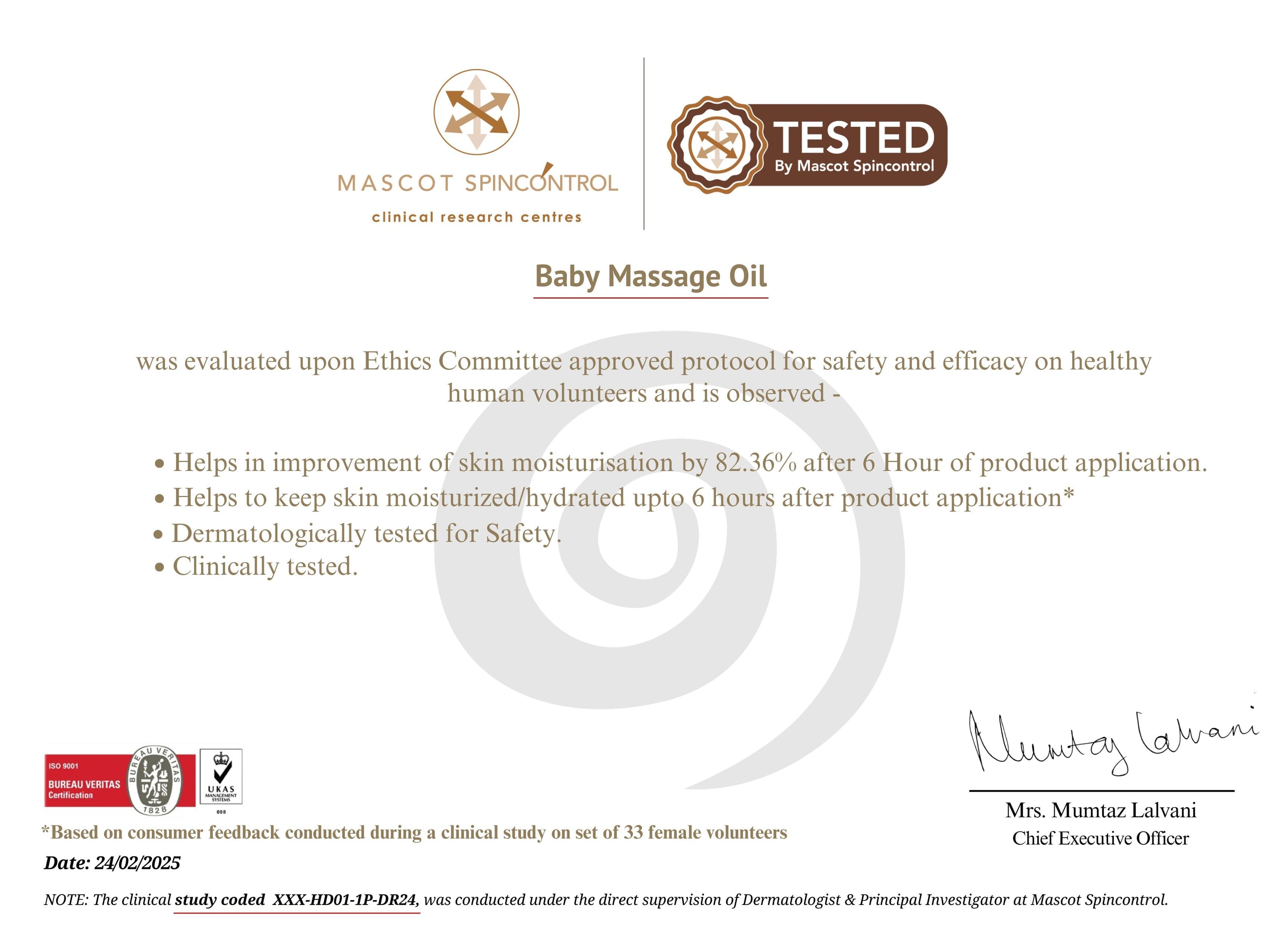 Yes. NikoMom Baby Massage Oil powered by HydraNest is dermatologically tested under pediatric supervision. The test confirms it is non-comedogenic, non-irritant, and suitable for daily baby use — even on sensitive skin types.