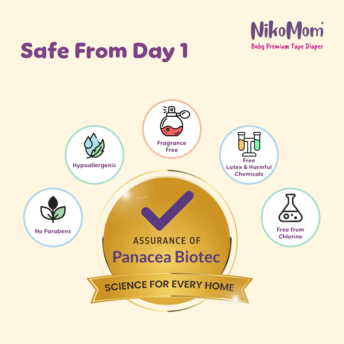 NikoMom Baby Tape Diapers are made with breathable materials that help prevent rashes and irritation. They are also free from harmful chemicals, ensuring your baby’s skin stays healthy and safe.