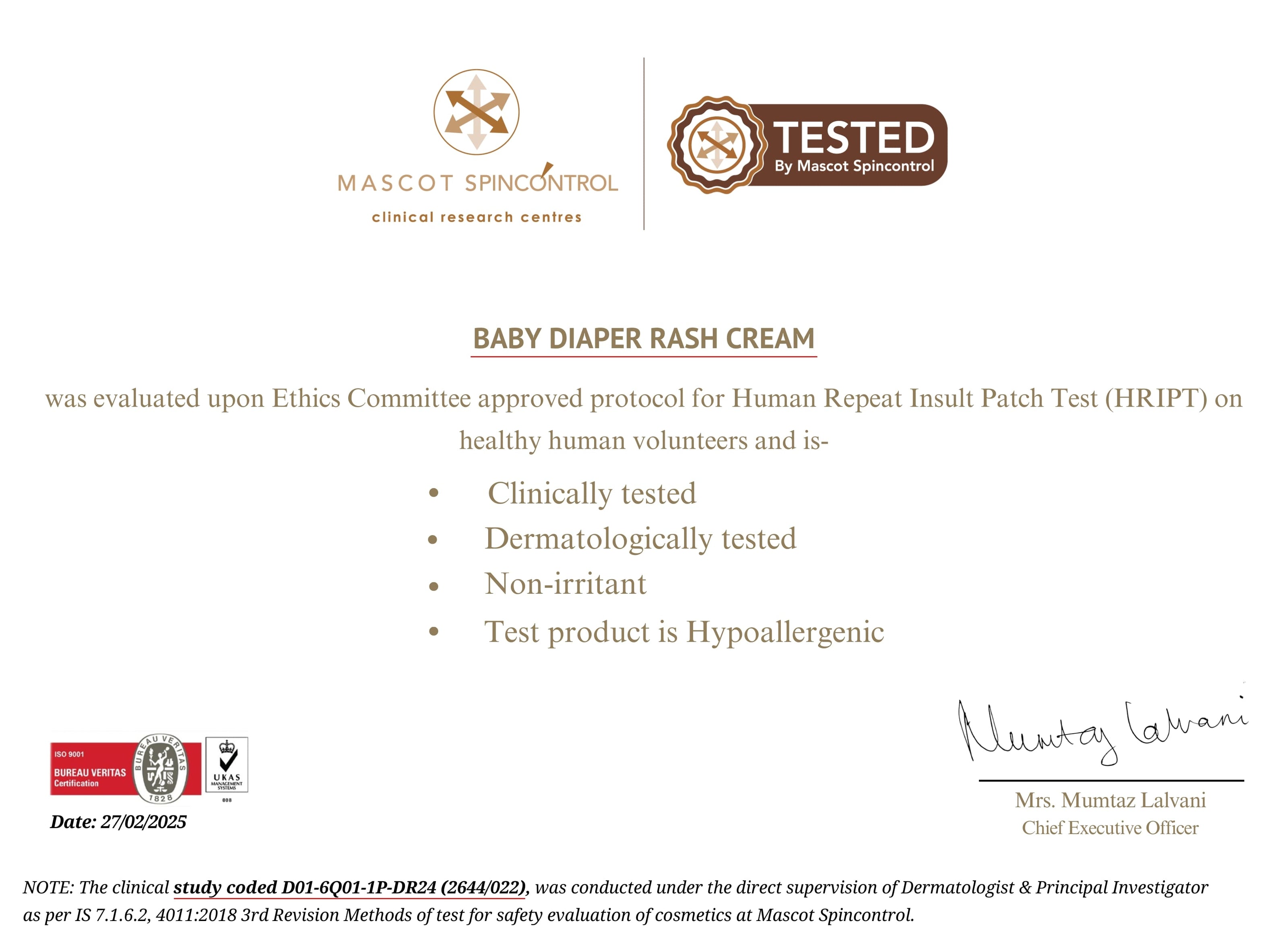 Certified as Non-Irritant and Hypoallergenic